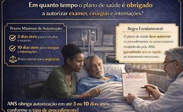 Além da resposta/autorização, a ANS divulga prazos máximos para que o atendimento seja efetivamente realizado, em dias úteis, considerando a disponibilidade na rede assistencial do plano e a natureza do procedimento.