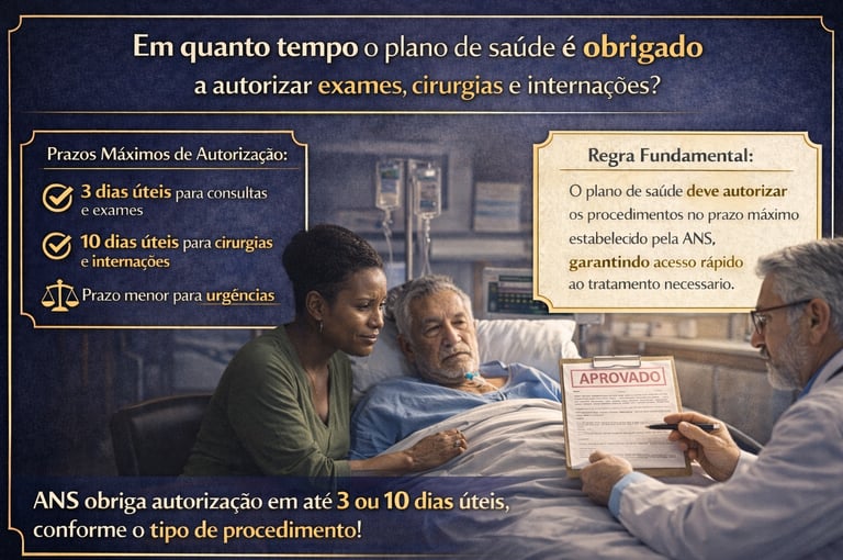 Esses prazos pressupõem que o beneficiário já cumpriu carência aplicável e que o procedimento está dentro da cobertura do contrato/segmentação assistencial.