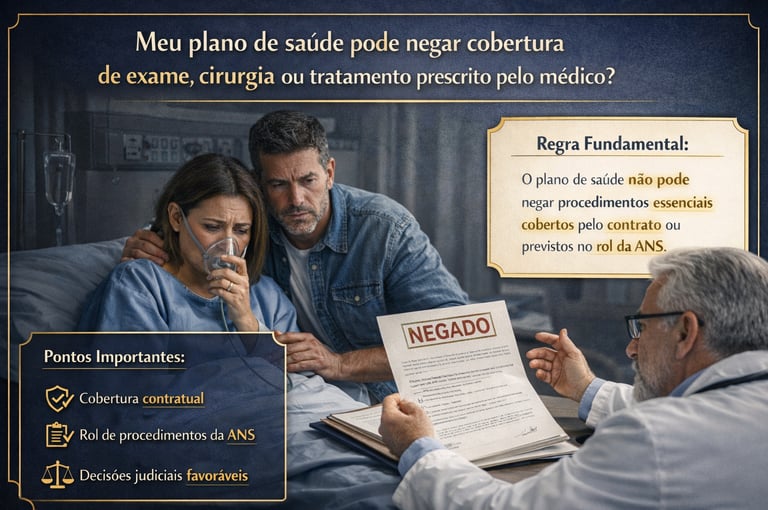 Se a doença é coberta, o exame/cirurgia/tratamento é necessário, possui evidência científica e está em conformidade com a regulação sanitária, o plano não pode recusar a cobertura apenas por ser caro ou por não constar do rol da ANS, sobretudo após a Lei 14.454/2022 e a ADI 7.265 do STF.Negativa legítima (em tese):