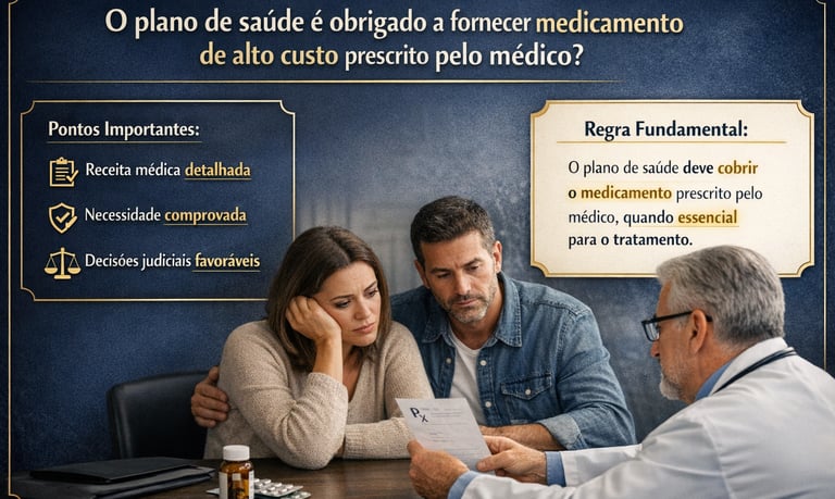 Saiba em quais casos o plano de saúde deve fornecer medicamentos de alto custo, o impacto da Lei 14.454/2022, do rol da ANS, do Tema 990 do STJ e como agir diante da negativa.